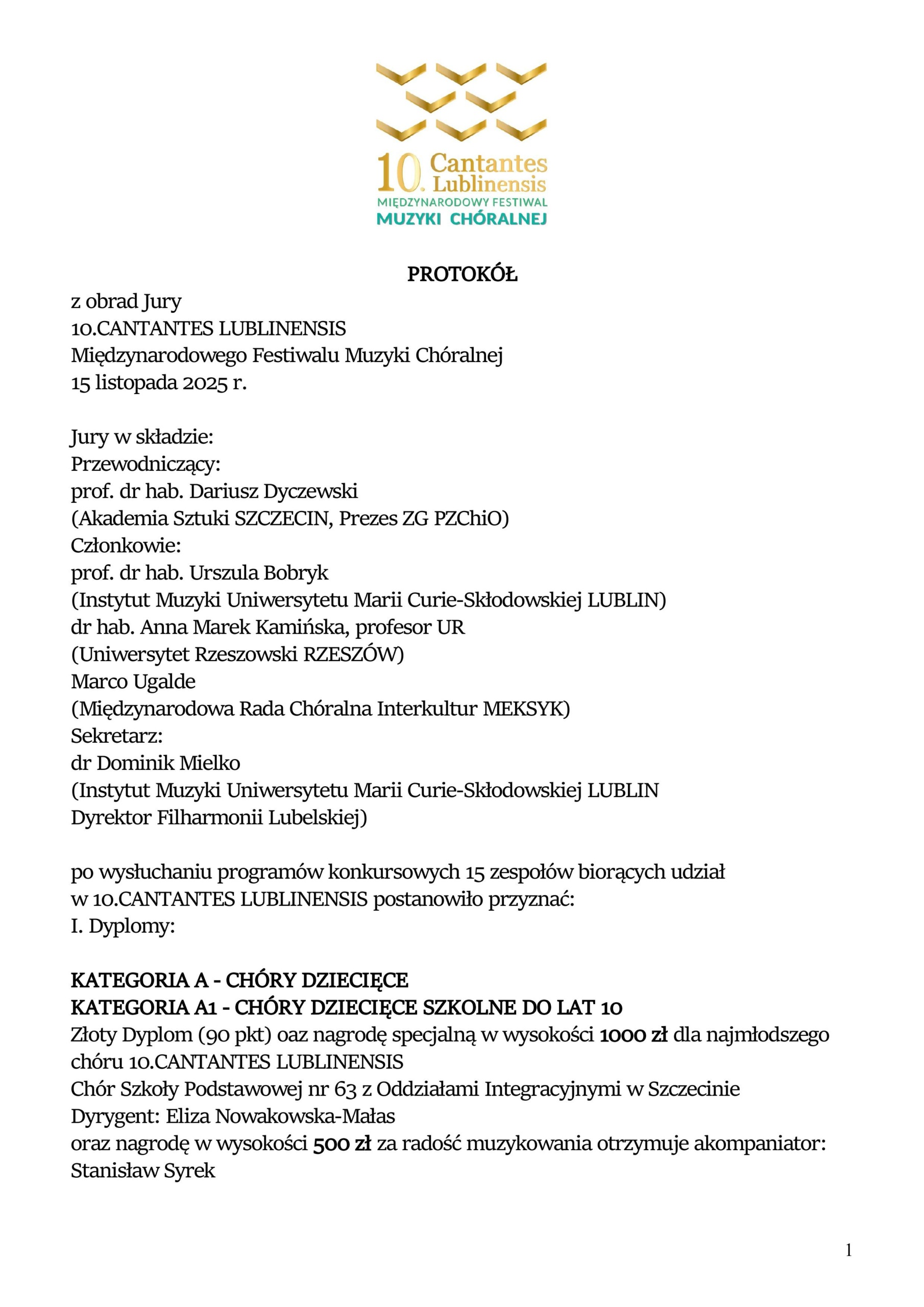 PROTOKÓŁ z 9.CANTANTES LUBLINENSIS
