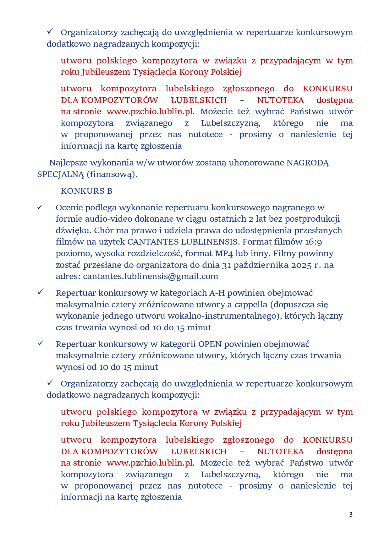 Lista utworów zakwalifikowanych do Konkursu dla Kompozytorów Lubelskich