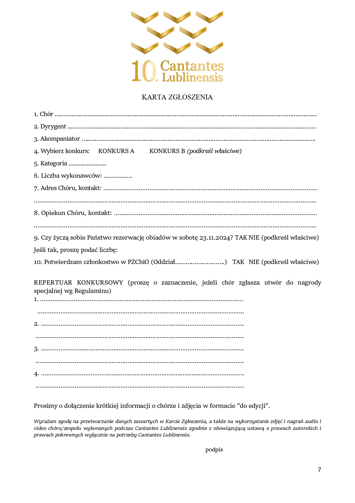 KARTA ZGŁOSZENIA / APPLICATION FORM